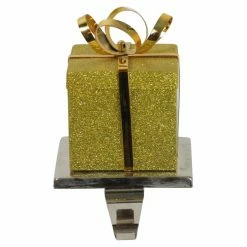 The Northlight Glittered Gift Box Shaped Christmas Stocking Holder‘s metal design makes it sturdy and strong to hold your stocking securely. The glittering gift-shaped accent on top adds a festive note to embellish your mantel.