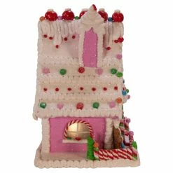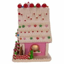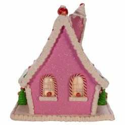 Give your holiday decorations a sweet upgrade with the Kurt Adler 10 in. Pink Battery Operated Candy LED Gingerbread House Table Piece. This decoration is piled high with Christmas spirit, from the gingerbread cookies to the soft glow from within the house (batteries not included). Chocolate candies, a candy cane fence, and a plethora of pipe frosting makes this decoration just like dessert.