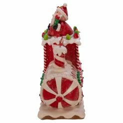 Christmas stops for nobody, and the Kurt Adler 7.5 in. Battery Operated Gingerbread Junction LED Train Table Piece is sure to get Santa there on time. This precious gingerbread and candy cane train features an engine, a storage caboose, and the big man himself. A gingerbread man conductor waves out a window while rushing Santa and his gifts to their next stop on a chilly December night.
