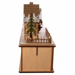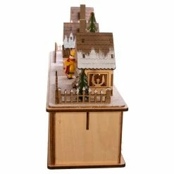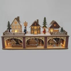 Give your favorite space some Christmas cheer with the Kurt Adler 8.66 in. Battery Operated Village LED House. The soft glow from inside these homes is created from AA batteries (not included) for a timeless, warm feeling. Two toy villagers in the square add pops of color with their yellow and blue clothing next to light posts and trees. They stand atop a scene that depicts three separate winter homes with various wooden accompaniments, from snowmen to moose.