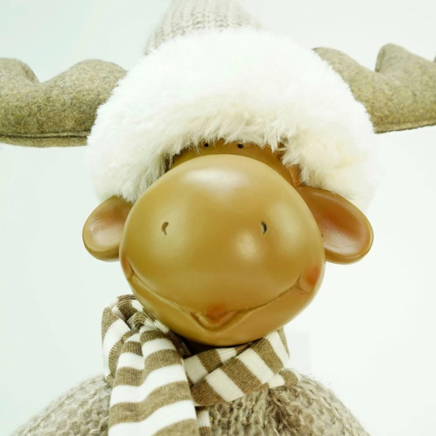 All rounded lines and soft fabric textures, there’s no better way to describe the Northlight 24.75 in. Moose in Sweater and Scarf Decorative Accent than downright jolly. This sweet decoration features soothing beige and white tones. High-quality fabric, faux fur, polyester, and resin construction brings an endearing look to this moose decoration.