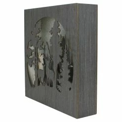 A soothing nighttime forest scene is captured in the Northlight Glittered Winter Woodland Deer Christmas Shadow Box Table Decoration‘s charming layers. The monochromatic gray finish of the wood adds to the rustic vibe of this silhouette box decoration.