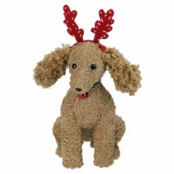Sit the Northlight Plush Bichon Frise Puppy Dog with Antlers Christmas Decoration sweetly on a shelf for a charming canine addition to your Christmas decor. This Bichon Frise dog is made of cuddly-soft brown polyester. He proudly wears bright red antlers for the season.