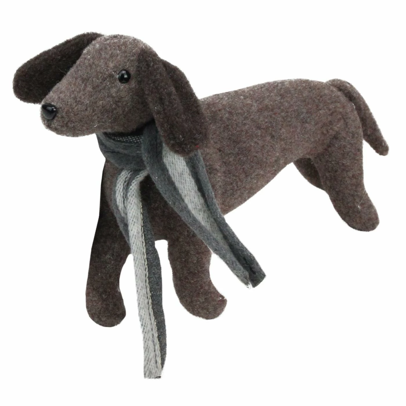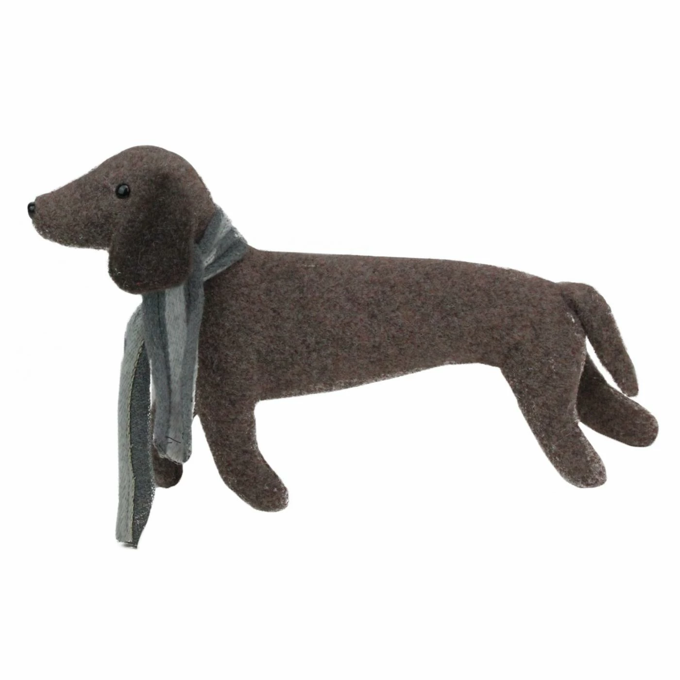 The Northlight Plush Dachshund Dog with Scarf Christmas Decoration is a sweet addition to holiday decor for any dog lover. This darling brown dachshund decoration is simply made from soft polyester.