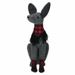 Attentive and sweet, the Northlight Sitting Dog with Plaid Collar Christmas Decoration is the ideal decoration for a dog lover. This happy hound is made of soft gray polyester. He sits wearing a bright red plaid scarf and charming snow boots.