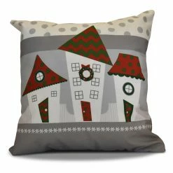Pay homage to coastal living with the holiday-themed E By Design Coastal Houses Decorative Pillow. Filled with synthetic down, cuddle this pillow and enjoy its many patterns which create a whimsical design. Tilted homes with Christmas wreaths sit askew in a charming manner atop this polyester pillow.