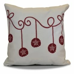 No matter where you are this season, the E By Design Sanddollar Ornaments Decorative Pillow brings a subtle hint of beachy style to the holidays. A nautical rope design boasts hanging sanddollars. Available in multiple color and size options, choose the perfect design to suit your home. This pillow is easily spot cleaned.
