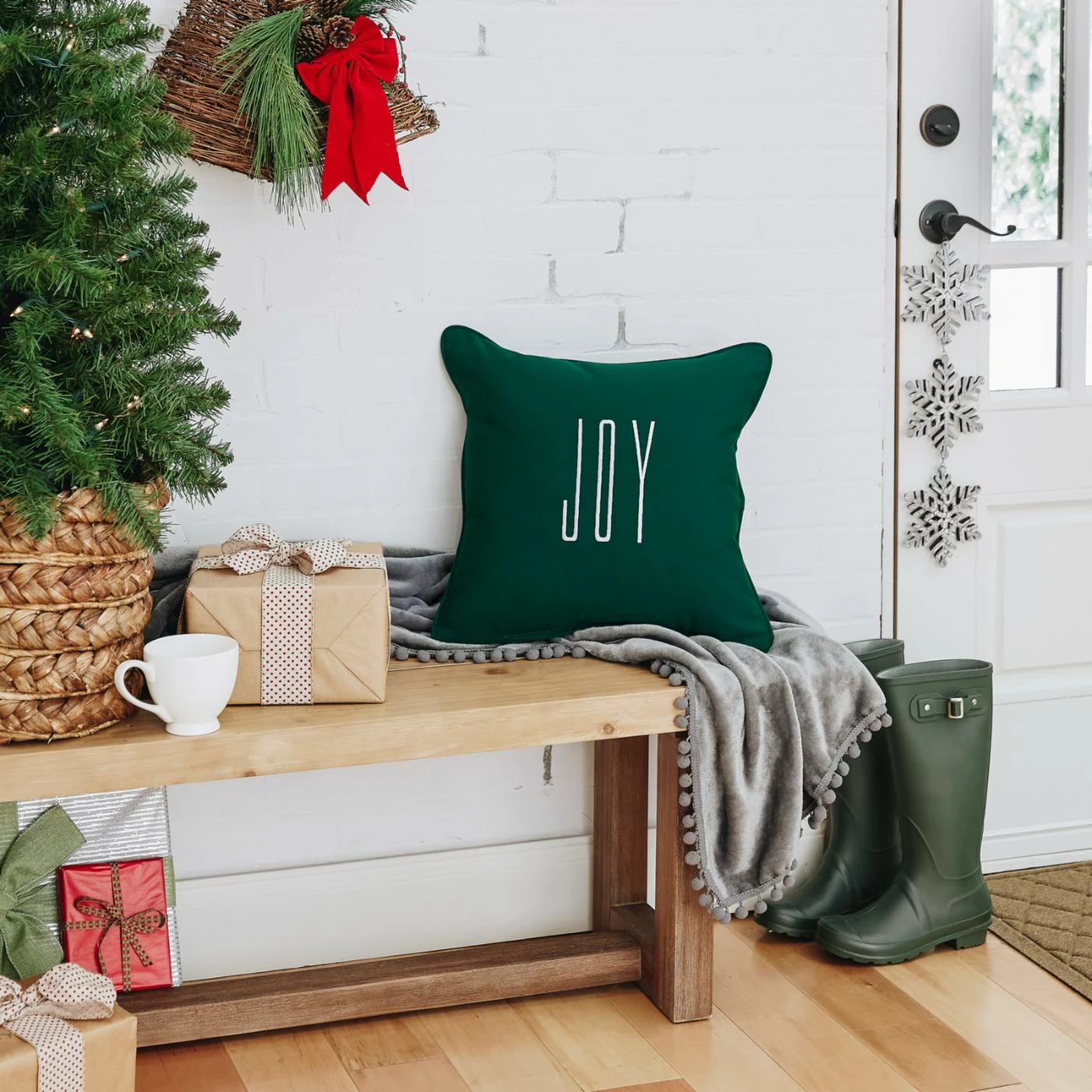 Take pleasure in the simple things this holiday season, like adding the Mozaic Company Hunter Green with White Embroidery JOY Embroidered Pillow to a sofa or bench. The hunter green pillow is embroidered with the word JOY and filled with recycled polyester for sustainable construction.