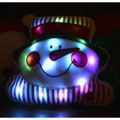 Invite a friendly face inside from the cold with the Tache Home Fashion Chilly Snowman Microbead LED Throw Pillow. This creative pillow features a snowmanβs face, complete with rosy cheeks, a carrot nose, and a striped hat and scarf. Use the easy-push button to light up the pillow with bright colors.