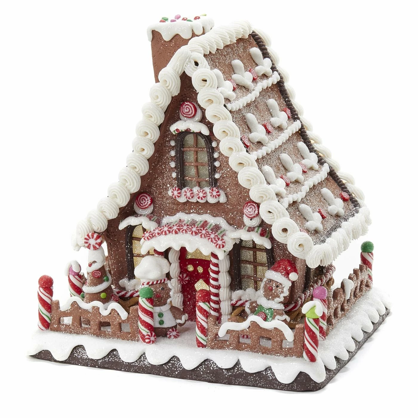 Give your Christmas village a fun and cheerful look with the addition of the Kurt Adler 10 in. Battery-Operated Claydough LED Gingerbread House Tablepiece. This festive gingerbread house is elegantly decorated with an assortment of sweet treats. LED lights glow from within, warming up the look of this festive piece.