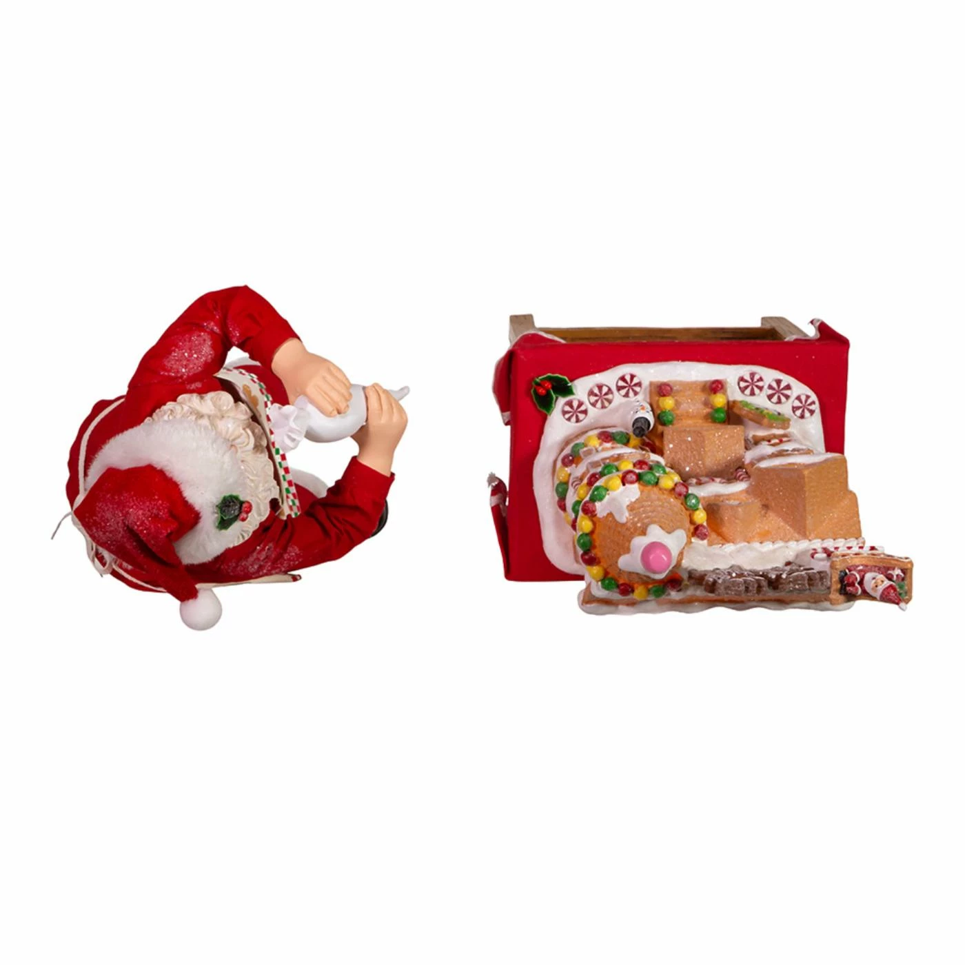 - 2 piece set features Santa and a gingerbread house