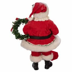 Need something festive for your cubicle or homeβs accent table? The Kurt Adler 10.5 in. Fabriche Gingerbread Santa with Stocking and Wreath offers a warm, old-fashioned touch that makes any are homier. Santa is rendered from polyester and PVC, featuring a red fabric suit, hat, and stocking with fluffy white trim. A brushy green wreath is slung over one arm while the stocking is bursting full with frosted gingerbread treats.