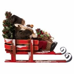 The Kurt Adler 22 in. Kringle Klaus Santa On Sled shows Santa in a sleigh lightly dusted with snow. The wood sleigh is in a red finish, while Santa dons a brown winter coat and hat trimmed in fur. Various Christmas toys, including a teddy bear, and other holiday dΓ©cor items are in the sled, adding to the festive spirit. Use the Kurt Adler 22 in. Kringle Klaus Santa On Sled to enhance your own indoor winter wonderland.