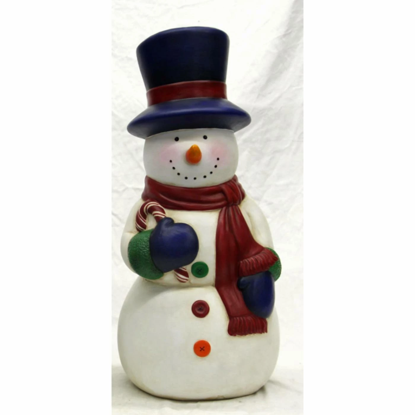 Frosty fun comes to life in the form of the Hi-Line Gift Ltd. Snowman with Candy Cane. The snowman sculpture is made out of weather-ready polyresin and is weighted at the bottom to ensure stability.