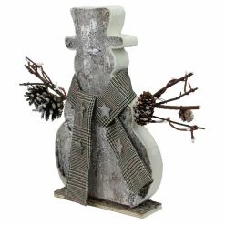 Flocked branches and pinecones plus add a natural element to the Northlight 11.75 in. Snowman Silhouette Table Top Figure. This freestanding snowman table top dΓ©cor wears a dapper plaid scarf with decorative star accents. Style it on your fireplace mantel or entryway console table to welcome winter to your home.